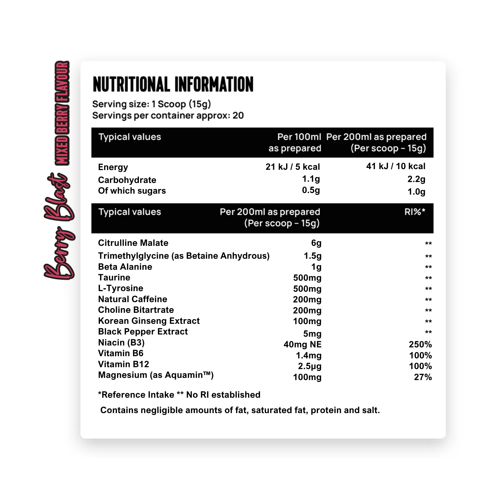 For best results, mix one scoop with water and drink it 15–30 minutes before your workout. You can also use it for an afternoon pick-me-up when you need energy and focus.